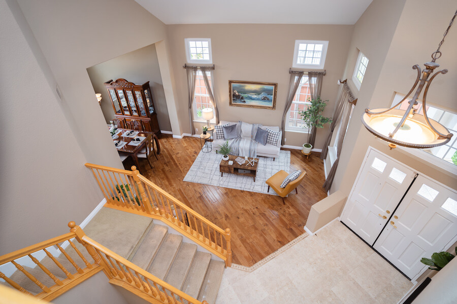 Take advantage of the wonderful opportunity to live in this community of Rancho Peñasquitos! This lovely home has an open and spacious floor plan perfect for entertaining. The 17-foot ceilings and beautiful windows in the living room allow for natural light throughout the day and relaxing in the family room is easy with a cozy brick fireplace. The downstairs also has the added convenience of a bedroom with French doors and a full bath! The upstairs primary bedroom comes with an easy-to-organize walk-in closet and en suite bathroom with dual sinks, a separate soaking tub, and a walk-in shower.